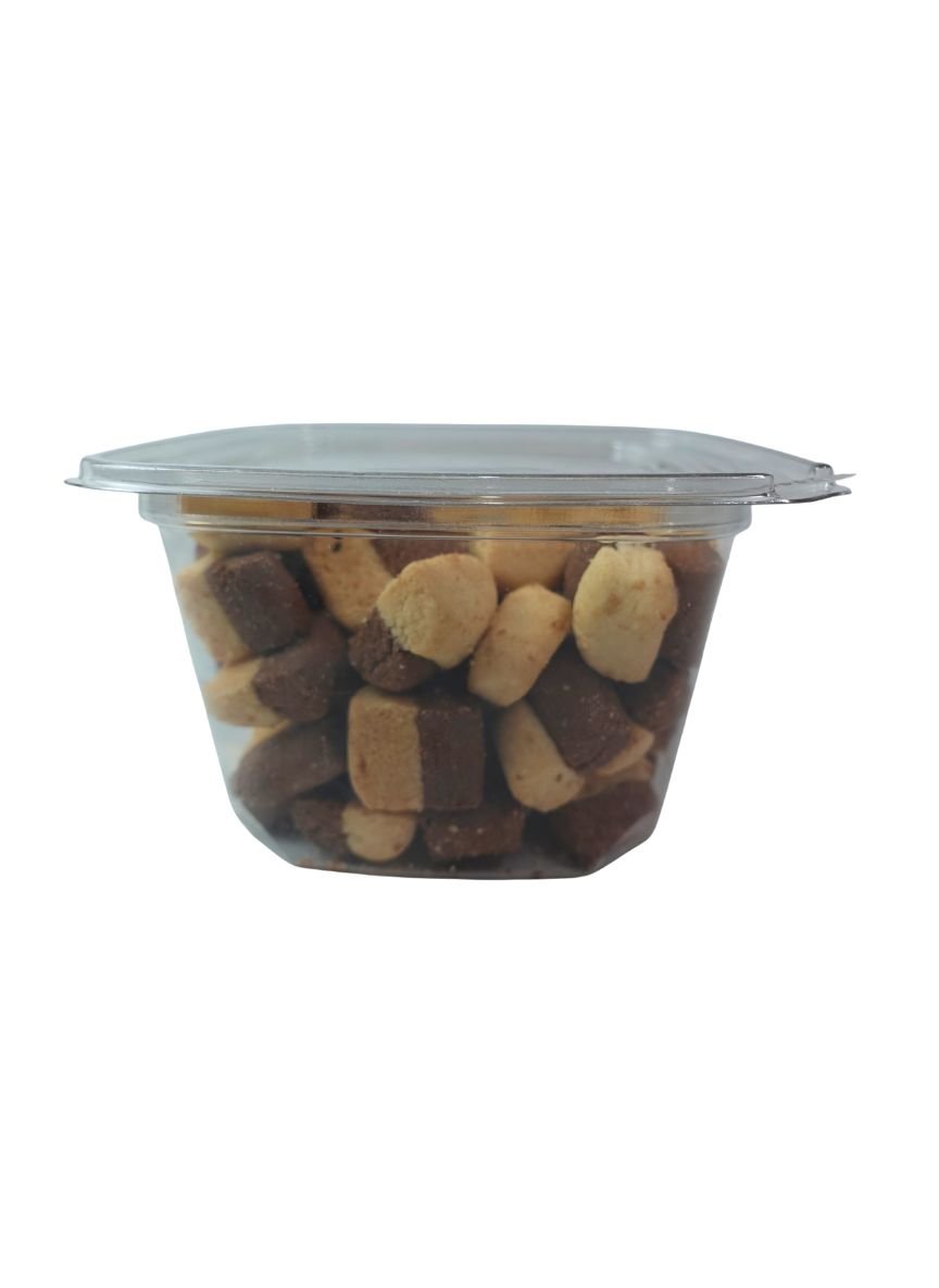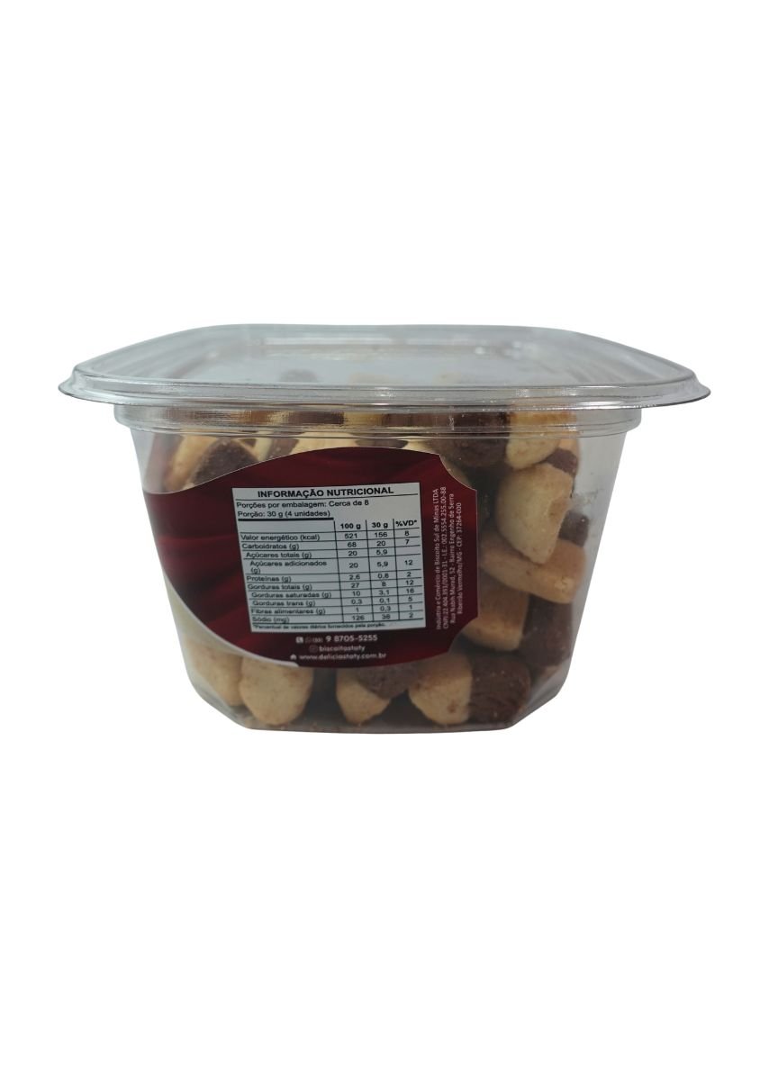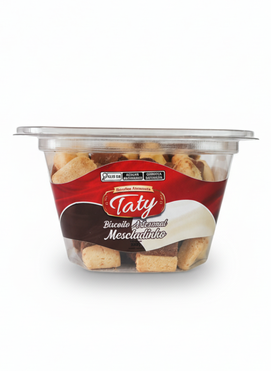 Charmoso, saboroso e com aquele visual que conquista à primeira vista. O Biscoito Mescladinho é feito com uma massa amanteigada delicada, metade branca e metade de chocolate, criando um contraste perfeito tanto no sabor quanto na aparência. A textura é macia e levemente crocante, com um equilíbrio delicioso entre o doce suave da massa tradicional e a intensidade sutil do chocolate. Ideal para quem gosta de biscoitos bonitos, gostosos e com aquele toque artesanal que faz toda a diferença.